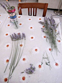En la entrada tengo una Lavanda enorme que crece y crece sin cesar. Para dar un poco de espacio a las demás plantas y flores he decidido cortar unas cuantas y aprovechar sus flores para hacer un pequeño regalo a un@s amig@s que veré el fin de semana.